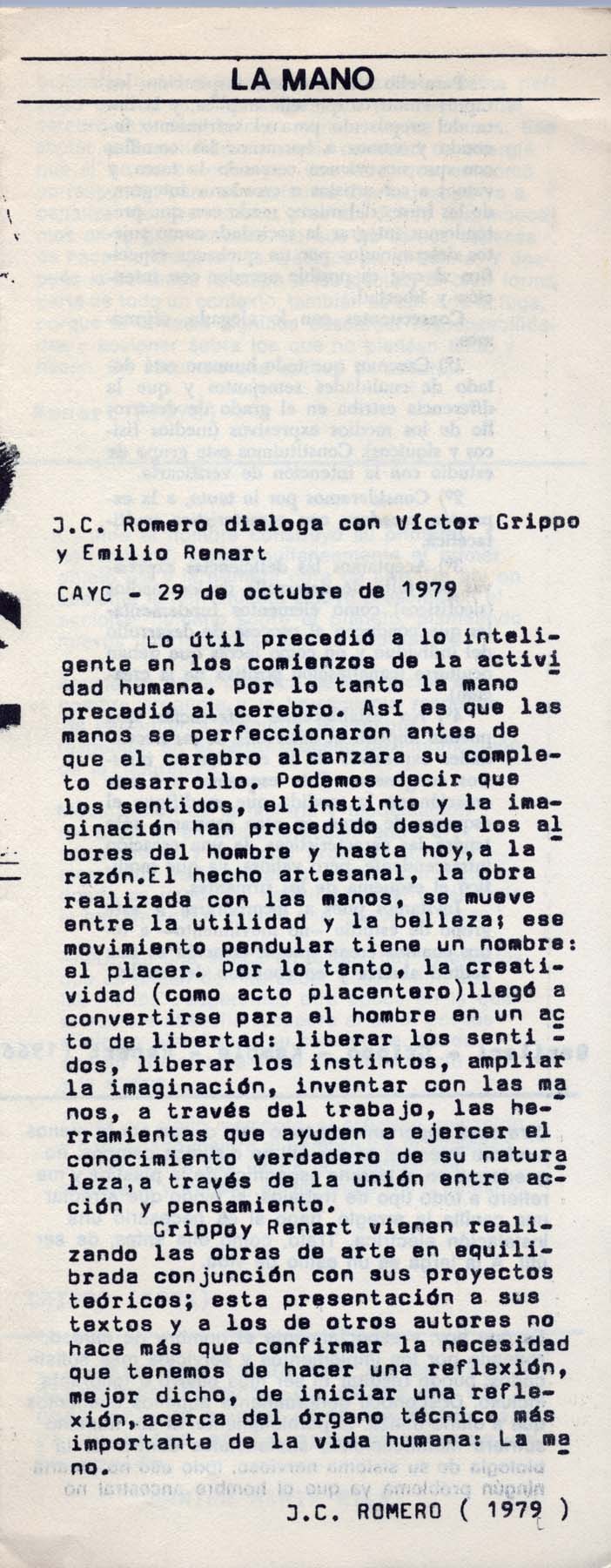 Fotografía que acompaña el catálogo de La Mano.