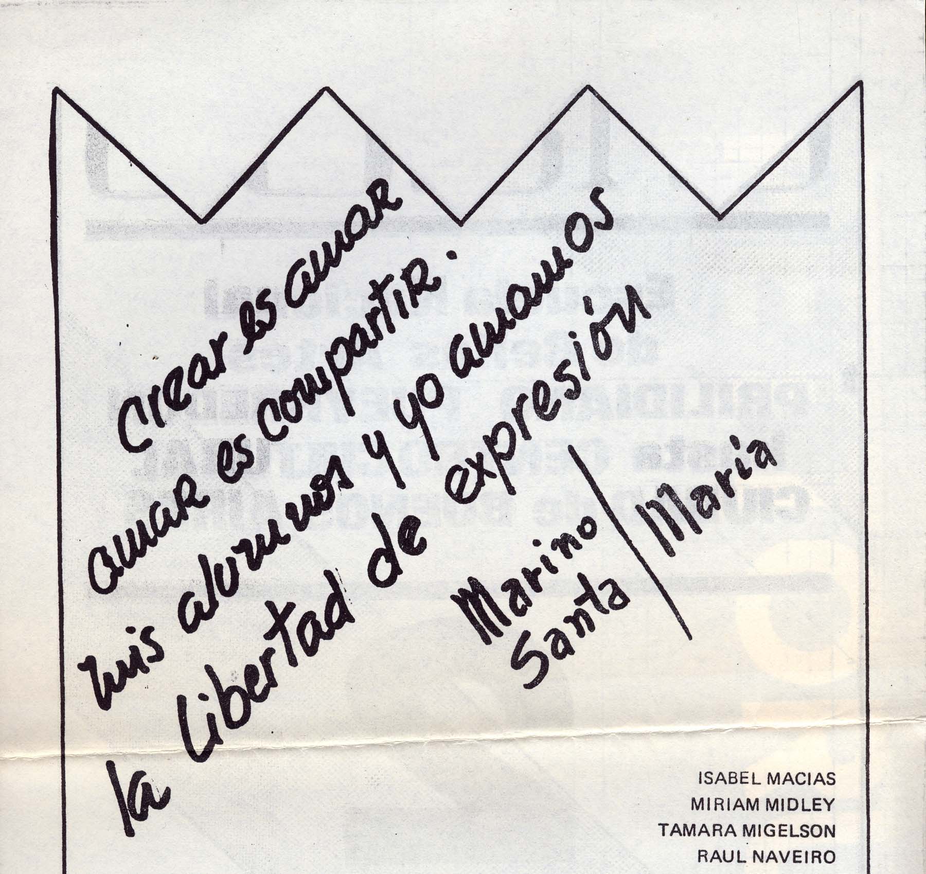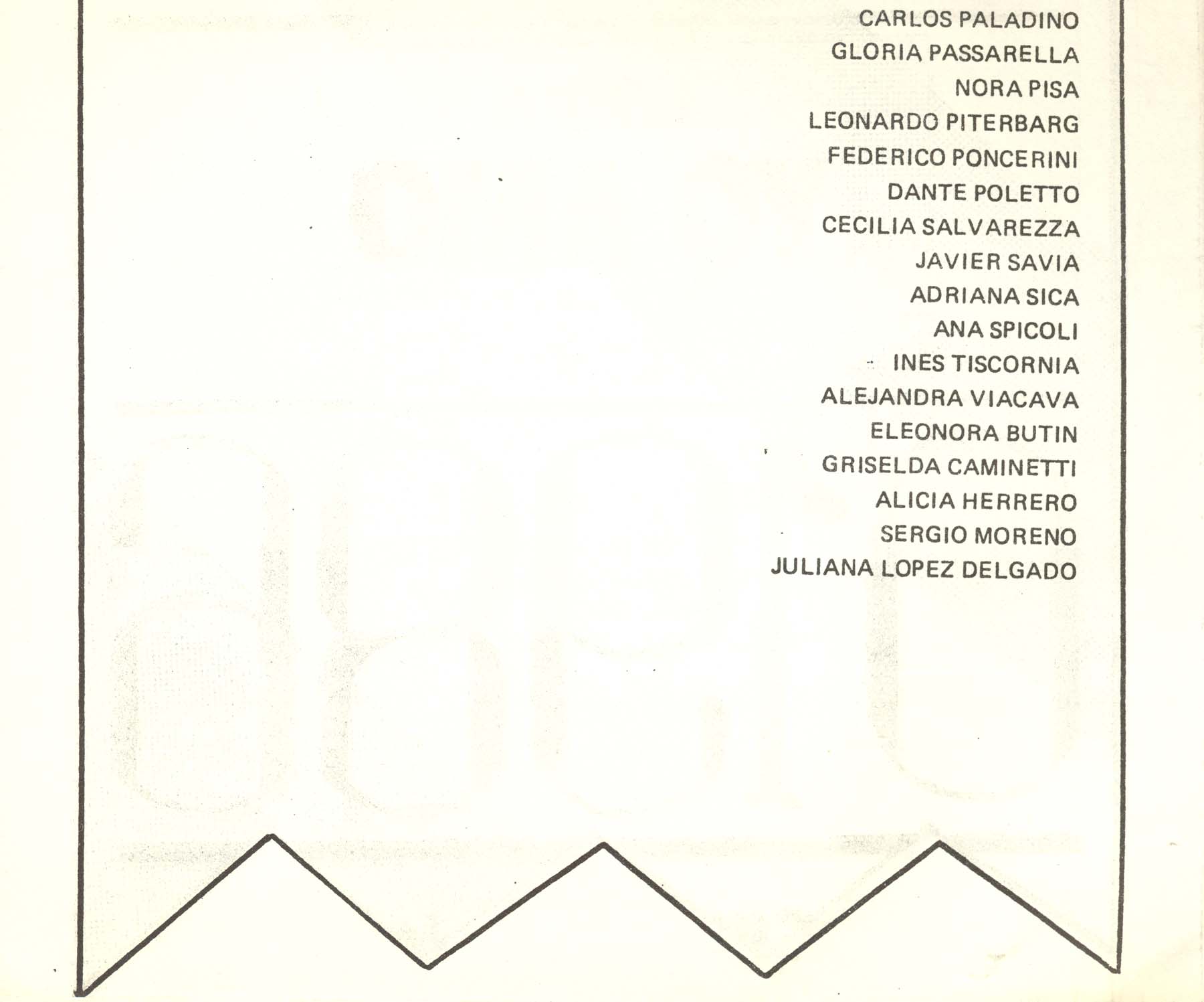 Folleto línea 2. Escuela Nacional de Bellas Artes Prilidiano "Pueyrredon hasta Centro Cultural Ciudad de Buenos Aires". Firman: Isabel Macías, Miriam Midley, Tamara Migelson, Raul Naveiro, Carlos Paladino, Gloria Passarella, Nora Pisa, Leonardo Piterbarg, Federico Poncerini, Dante Polleto, Cecilia Salvarezza, Javier Savia, Adriana Sica, Ana Spicoli, Ines Tiscornia, Alejandra Viacava, Eleonora Butin, Griselda Caminetti, Alicia Herrero, Sergio Moreno, Juliana López Delgado.