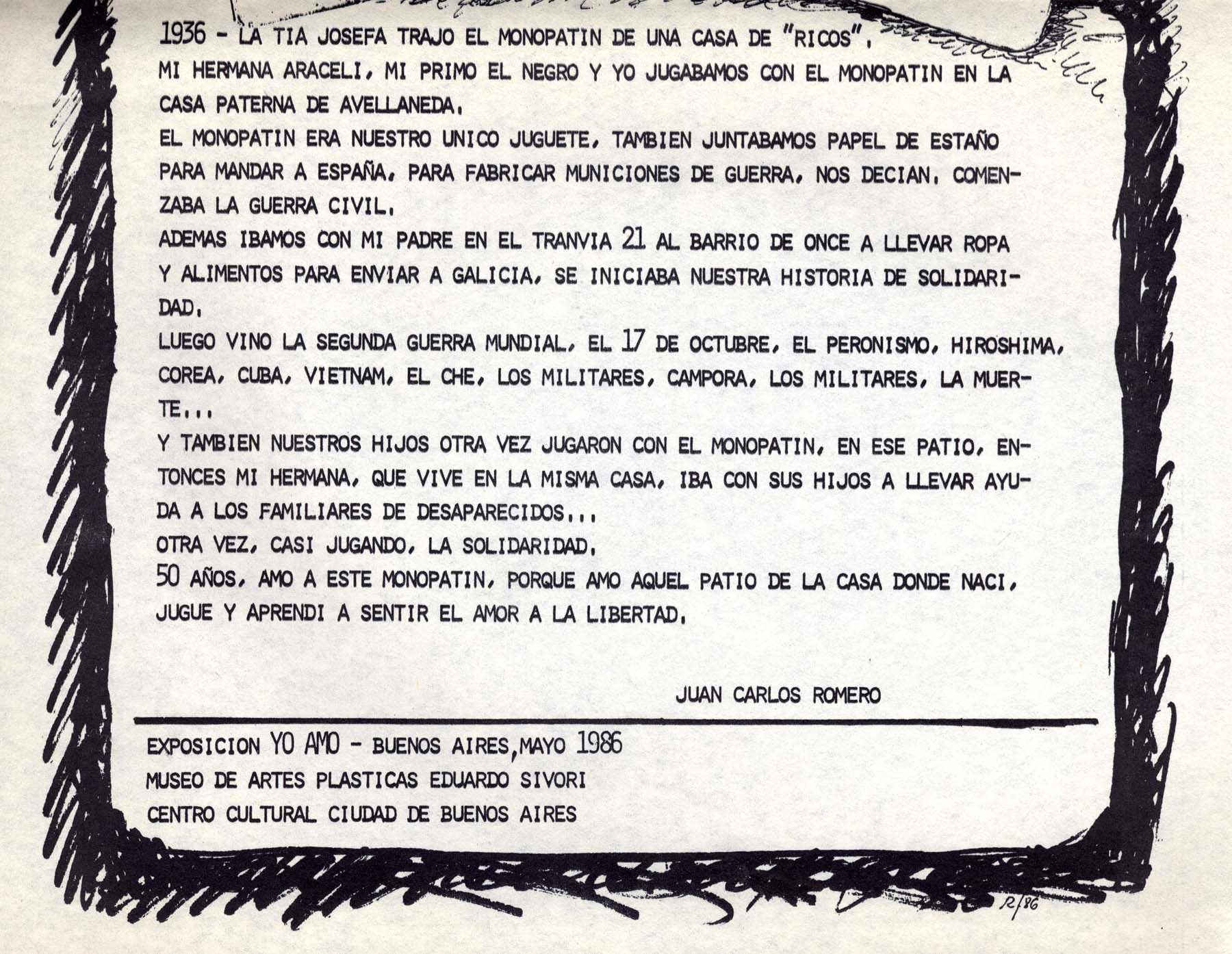 Folleto firmado por JCR hecho en el marco de la muestra "Yo Amo" Texto e imágenes de JCR.