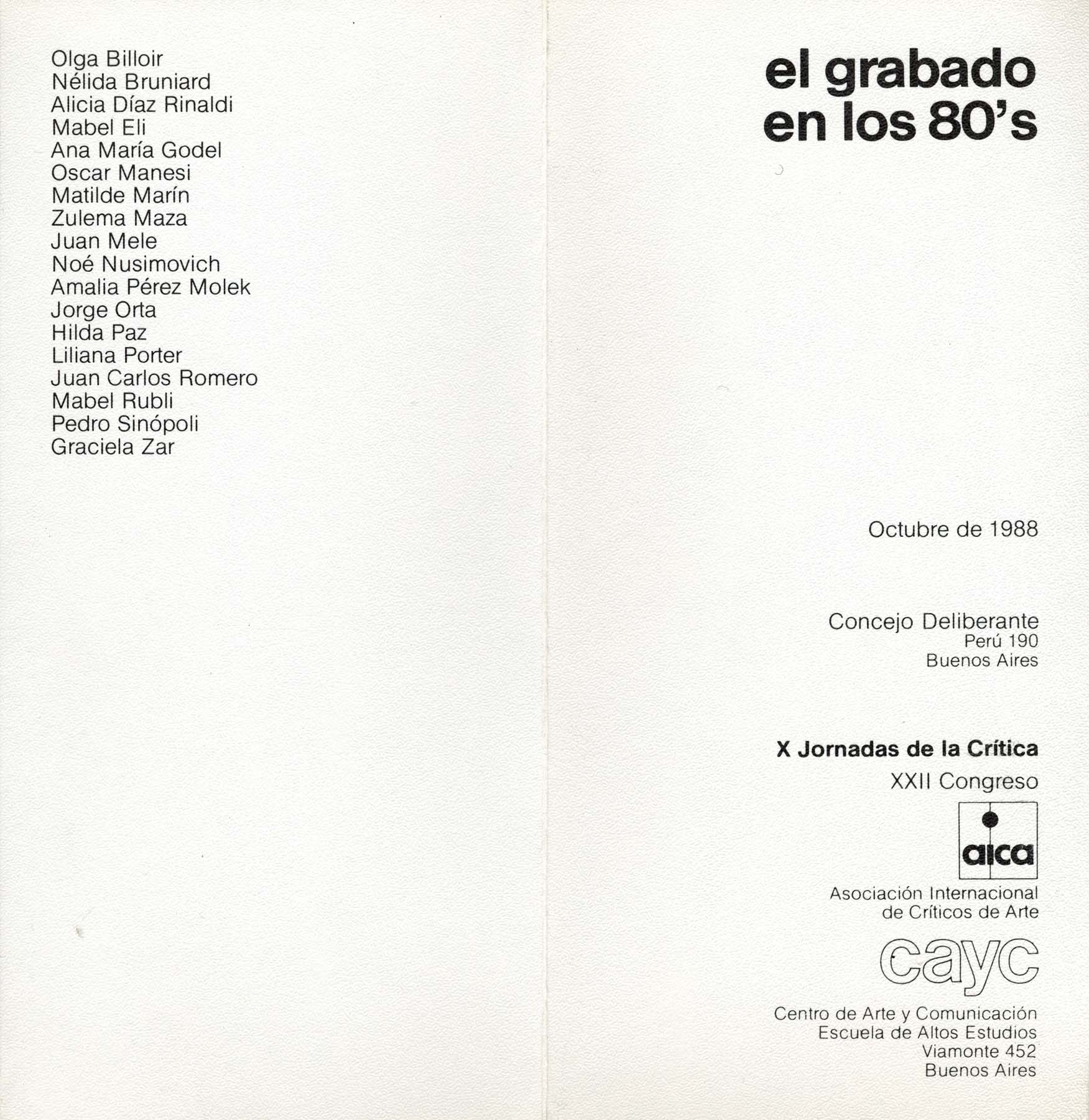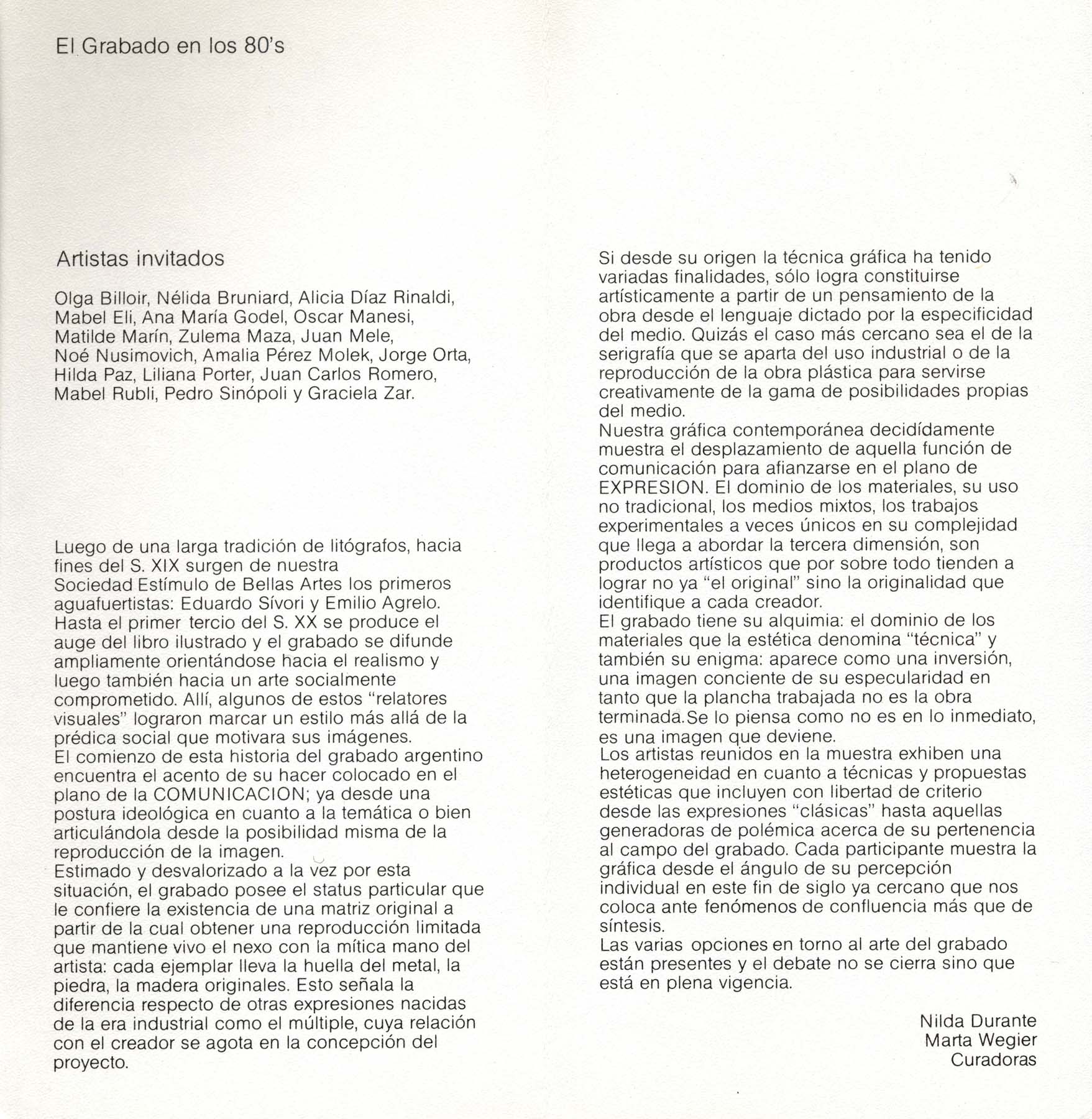 Exposición en el concejo deliberante. X jornadas de la crítica. XXII Congreso. Texto de Nilda Duarte. Marta Wegier (aparecen como curadoras). Artistas invitados: Billoir, Bruniard, Díaz Rinaldi, Eli, Godel, Manesi, Marín, Maza, Mele, Nusimovich, Perez Molek, Orta, Paz, Porter, Romero, Rubli, Sinópoli, Zar,