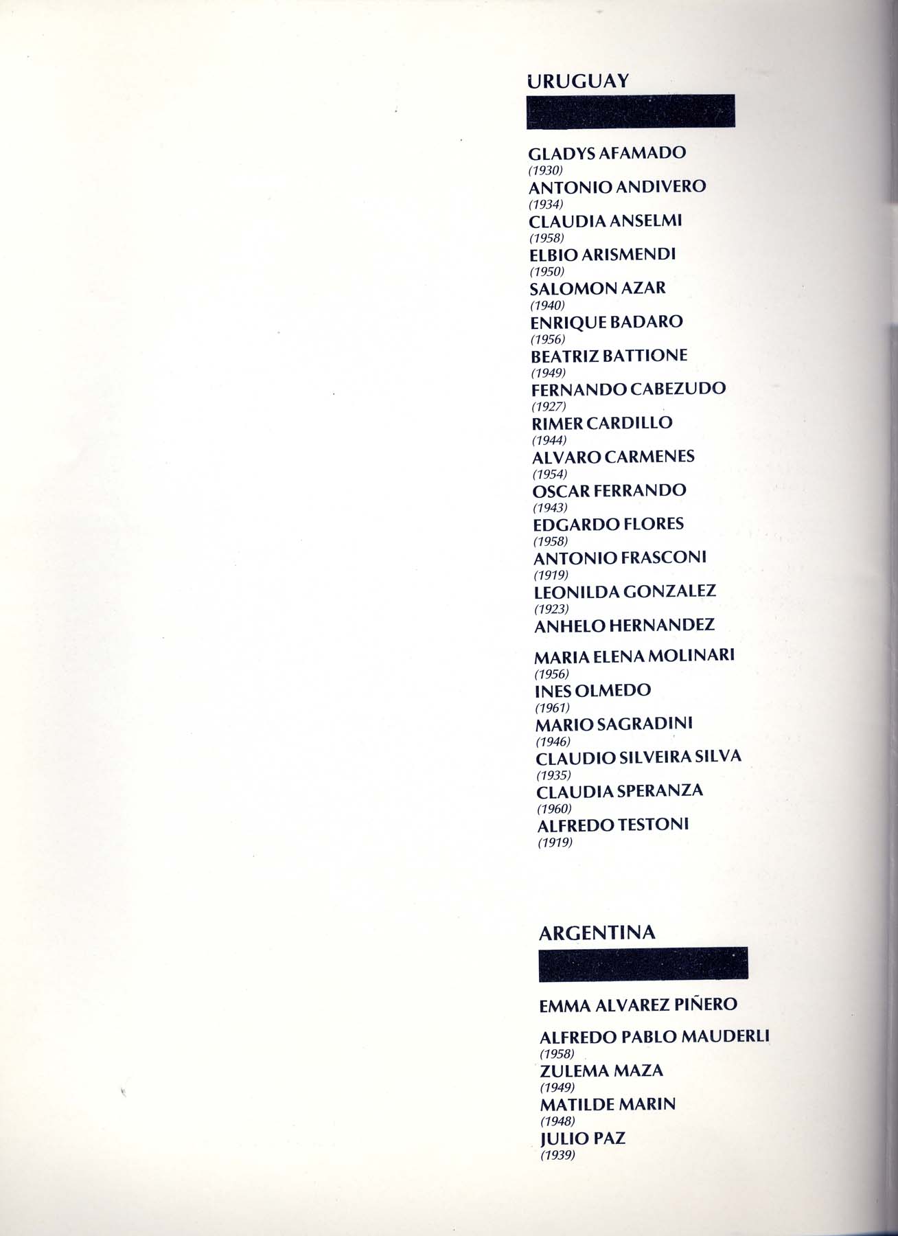 Participan: Uruguay: Afamado, Andivero, Anselmi, Arismendi, Azar, Badaro, Battione, Cabezudo, Cardillo, Carmenes, Ferrando, Flores, Frasconi, Gonzalez, Hernandez, Molinari, Olmedo, Sagradini, Silva, Speranza, Testoni.Argentina: Piñero, Mauderli, Maza, Marin, Paz, Porter, Romero, Brasil: Abramo, Bernstein, Bernardi, Campos, De Olivera, Domingues, Fattorelli, Figueiredo, Gïller, Grassman, Grillo, Holanda, Jardim, Leitao, Martini, Martins, Ohlweiler, Osinski, Pozoco, Silveira, Tolpolar.