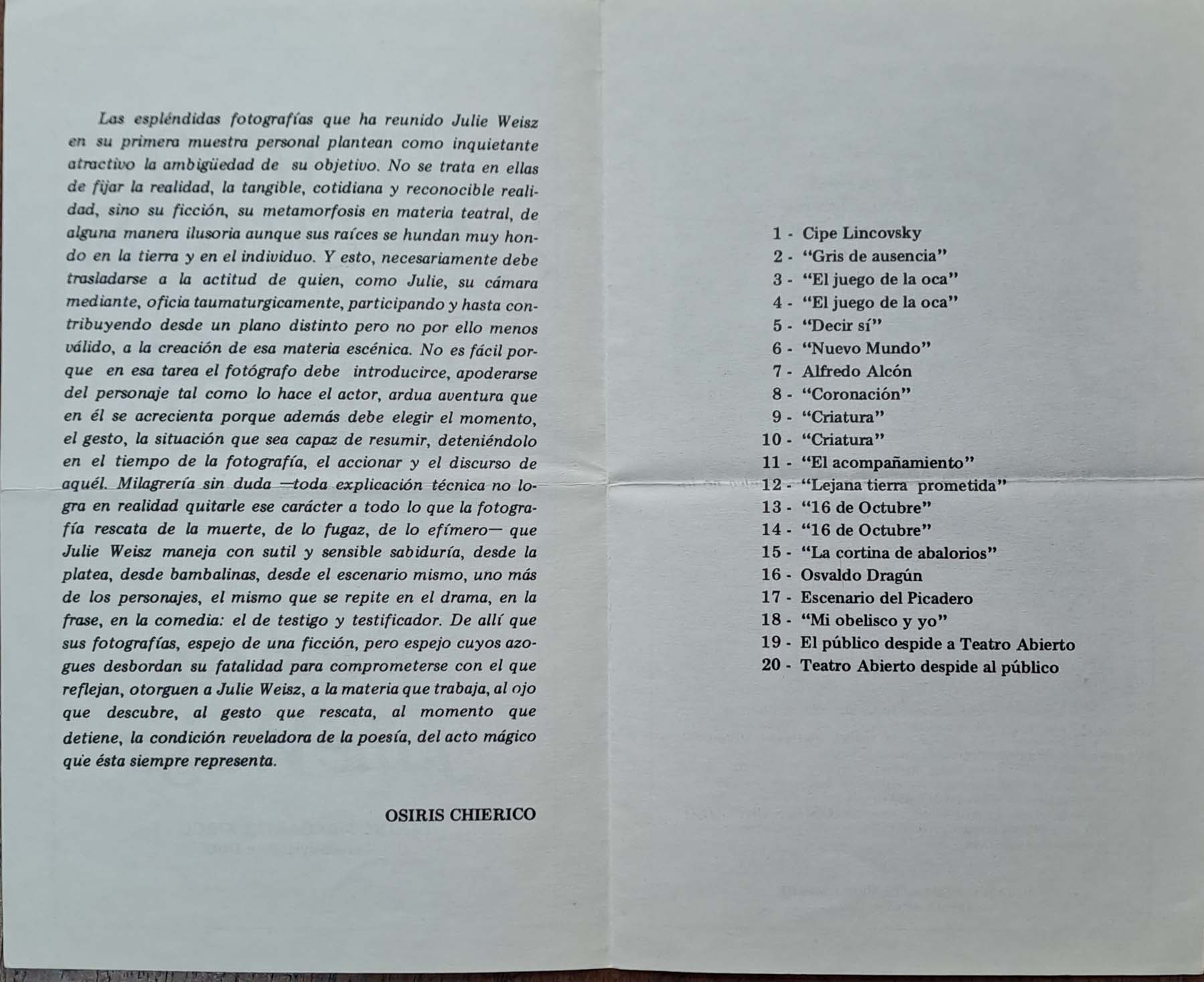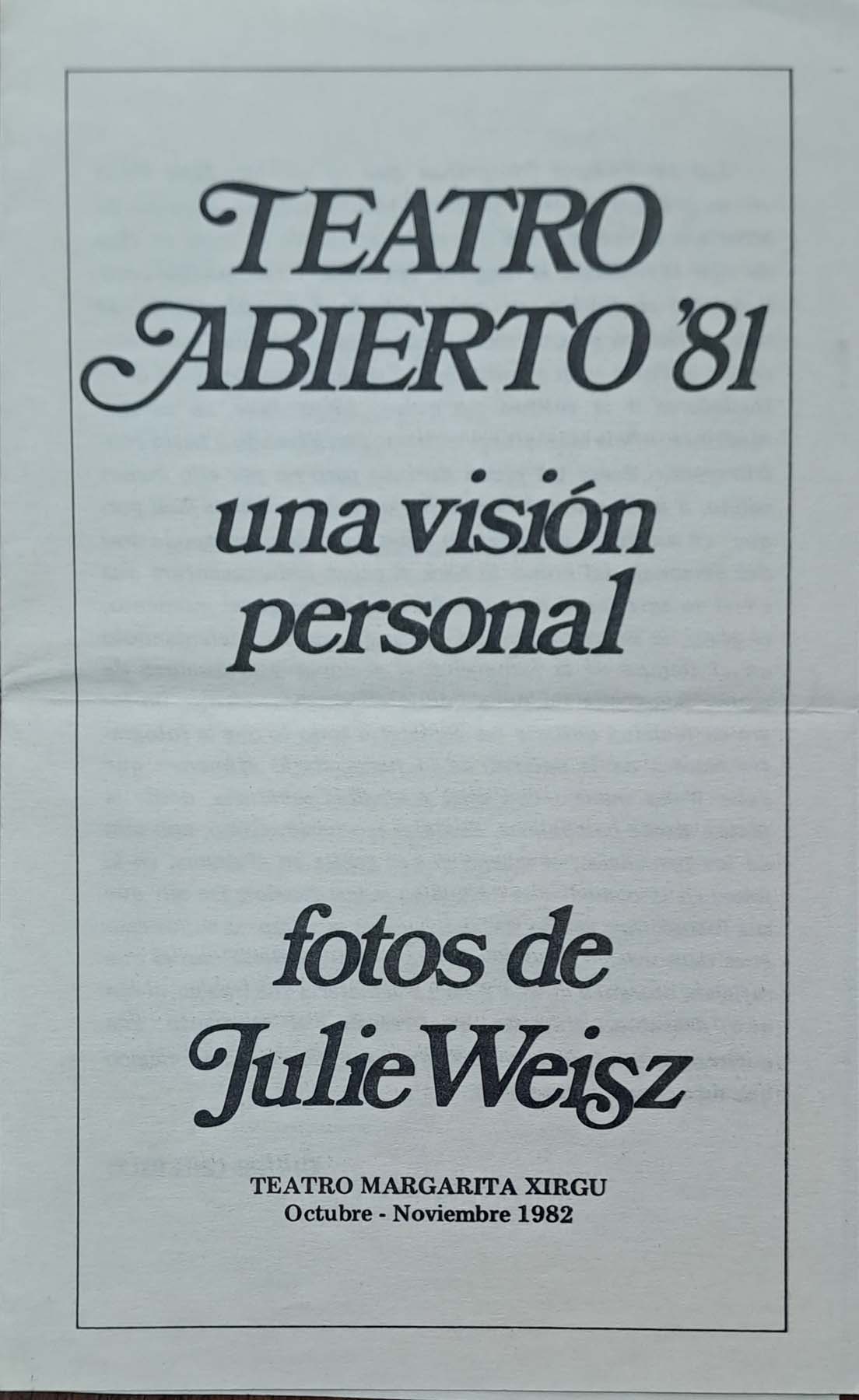 Exposición de las fotografías de Julie Weisz para Teatro Abierto 1981. Octubre-noviembre de 1982